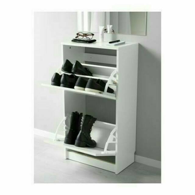 Ikea Bissa Kabinet Sepatu Dengan 2 Kompartemen Rak Sepatu Putih Shopee Indonesia