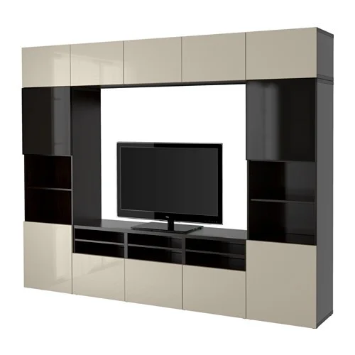 Besta Wall Mounted Cabinet Combination Black Brown Selsviken High Gloss Beige 70 7 8x16 1 2x25 1 4 Ikea