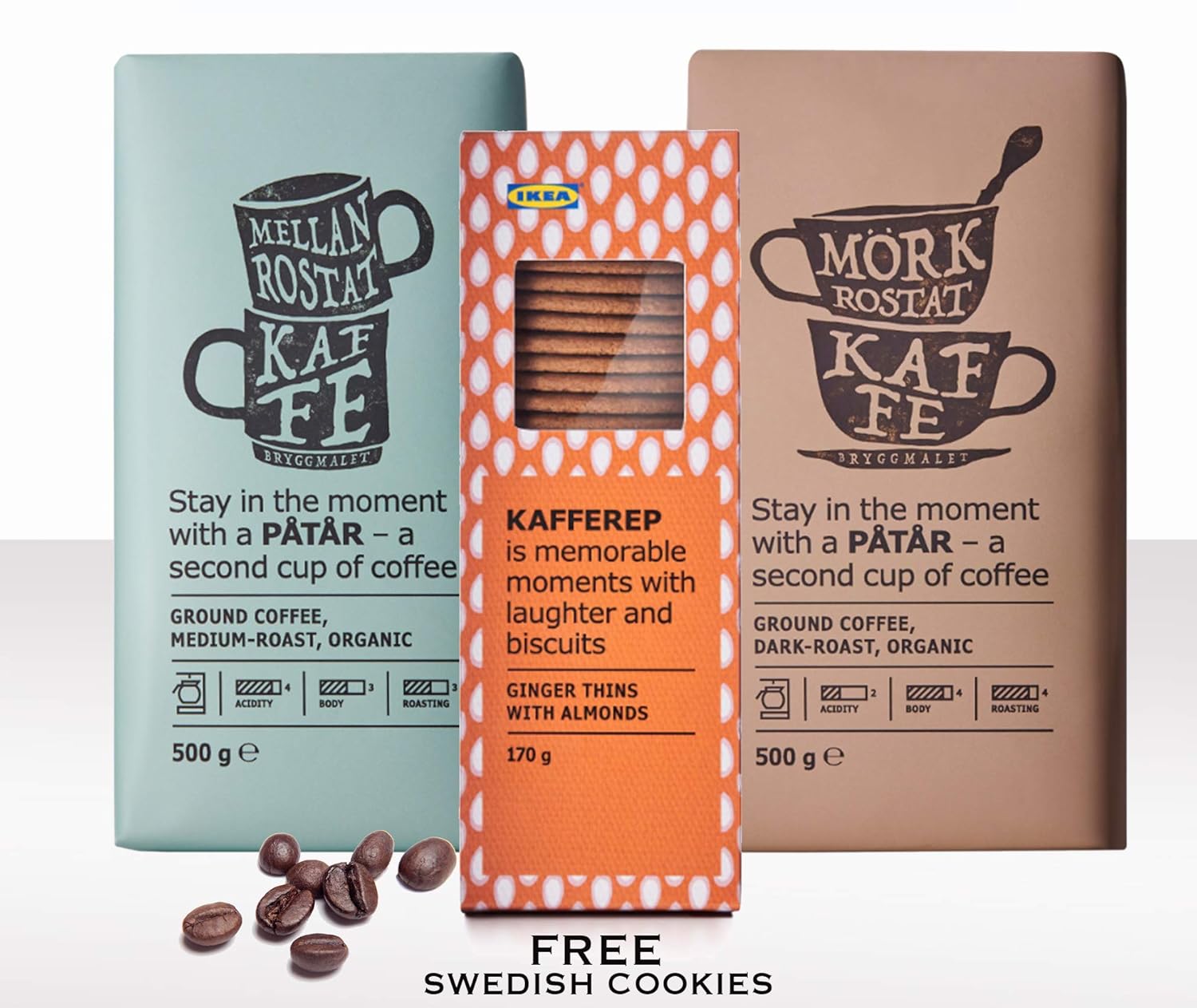 Amazon Com Ikea Ground Coffee Medium And Dark Roast Variety Pack Bundle 100 Organic Arabica Coffee 17 6 Oz Each Pack Of 2 Total 35 2 Oz With Stainless Steel Measuring Coffee Spoon Grocery Gourmet Food