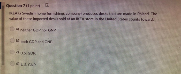 Solved Question 7 1 Point Ikea A Swedish Home Furnishi Chegg Com