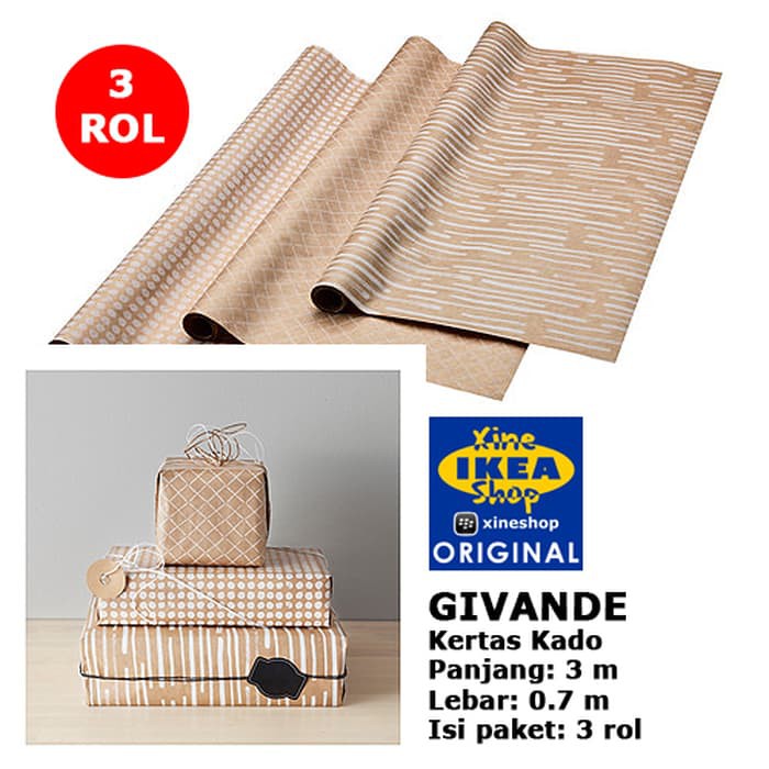 Ikea Givande Rol Kertas Kado Coklat Alami 3 Pcs Shopee Indonesia
