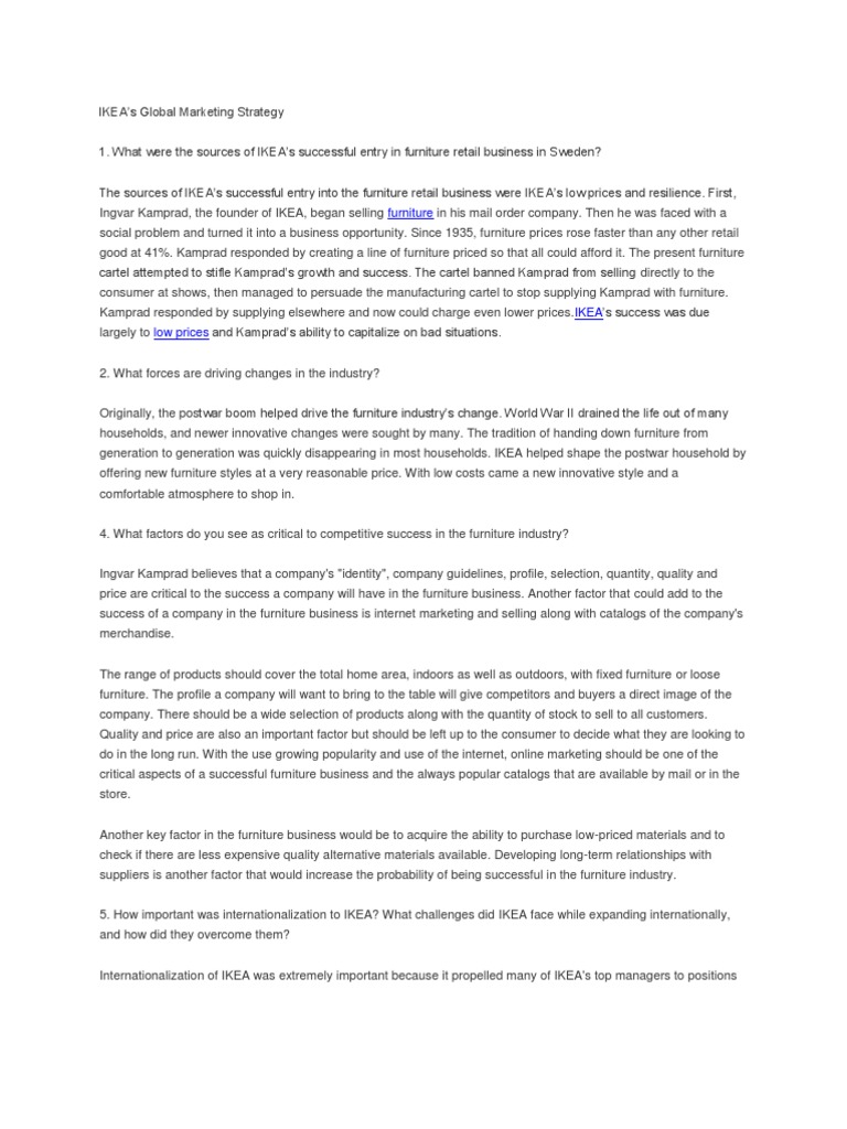 Ikea S Global Strategy Furnishing The World Essay
