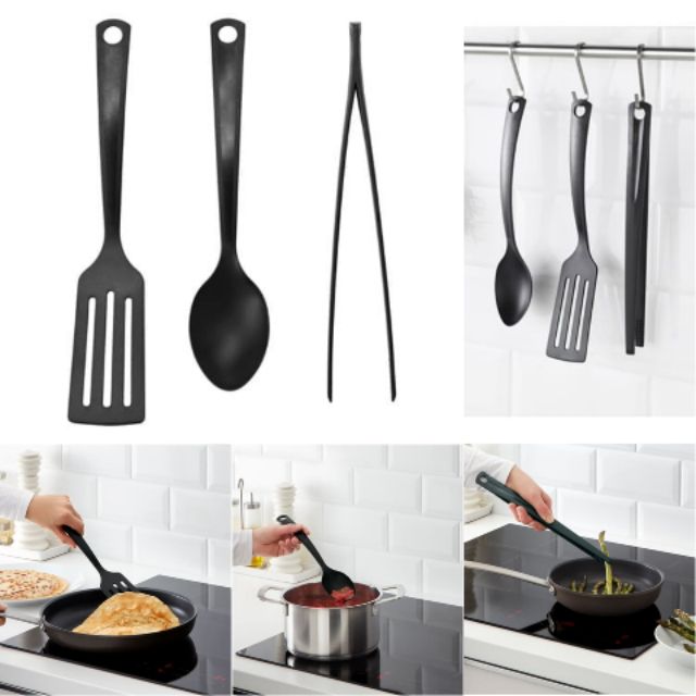Ikea Gnarp Kitchen Utensil 3pc Set Black Shopee Malaysia