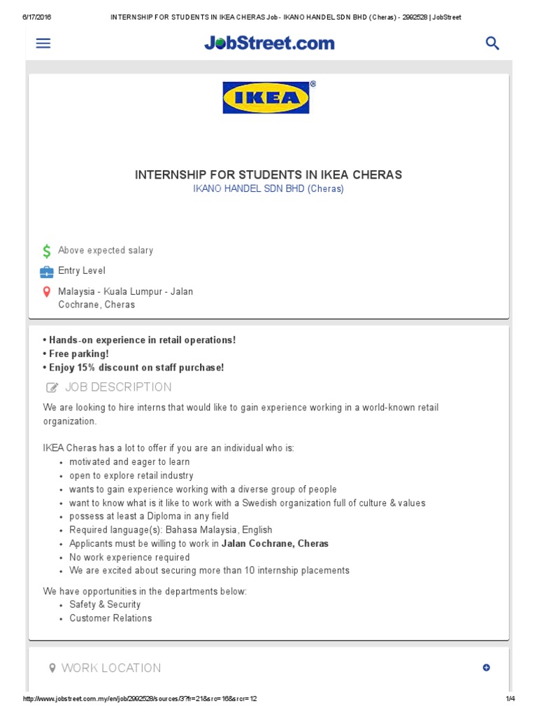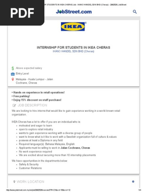 Internship For Students In Ikea Cheras Job Ikano Handel Sdn Bhd Cheras Retail Internship