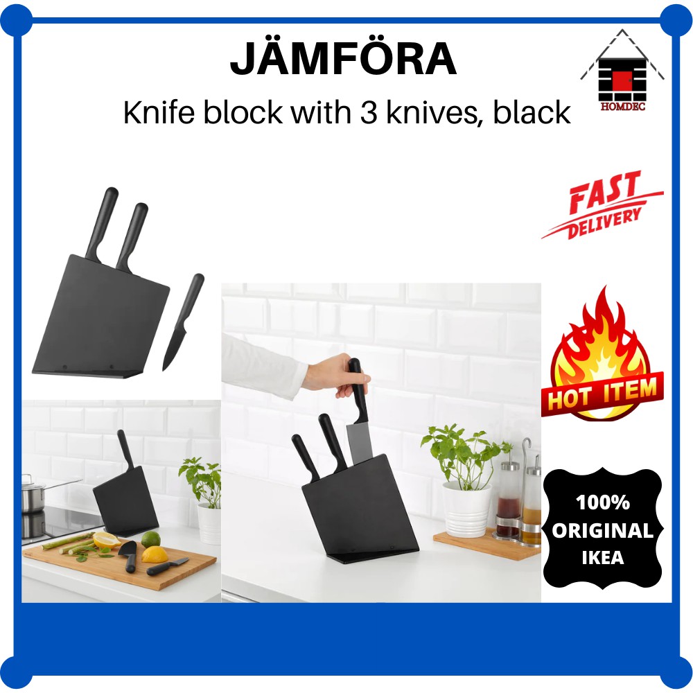 Ikea Jamfora Knife Block With 3 Knives Black I Blok Pisau Dengan 3 Pisau Hitam Shopee Malaysia