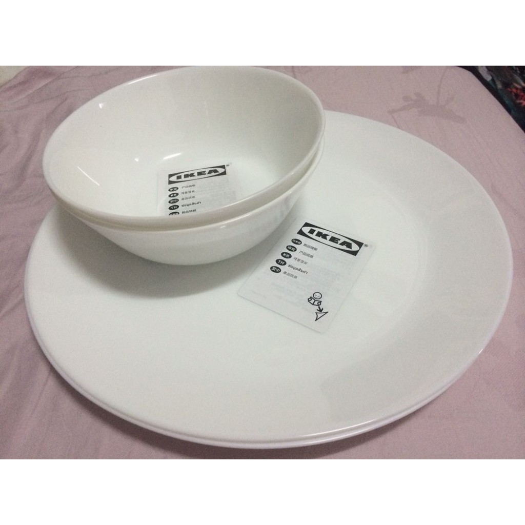 Ikea oftast plate. Ikea oftast plate white made of tempered glass which makes the plate durable and extra resistant to impact. This tableware has the same look and feel as bone porcelain but is made of tempered glass. I gave the plates and bowls a timeless functional and harmonious form that makes both the manufacturing and transport efficient. If you need a pratical lid for this serving bowl you can use the plate in the same series.