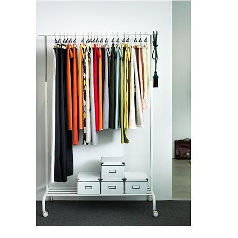 Ikea rigga clothes rack white you can easily adjust the height to suit your needs as the clothes rack can be locked in place at 6 fixed levels.