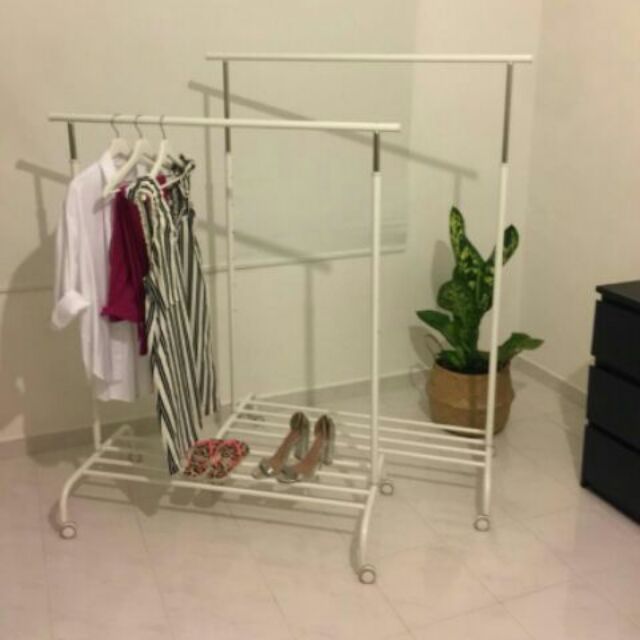 Kamar tidur ruang keluarga dapur ruang makan ruang kerja kamar mandi dunia anak ikea luar ruang laundry. There is room for boxes or 4 pairs of shoes on the rack at the bottom. There is room for boxes or 4 pairs of shoes on the rack at the bottom. As seen in the photo the rack was used for my children s dressing up clothes clothes not included it is a strong clothes rack.