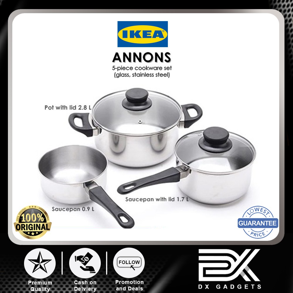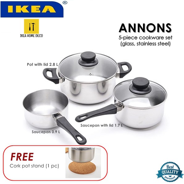 Suitable for all types of cooktops including induction cooktops. Tilted easy to grip handles make it comfortable and safe to pour out the contents of the pot. Ikea annons 5 piece cookware set glass stainless steel the glass lid allows you to monitor the contents of the pot during the cooking process. Each piece is made of stainless steel.